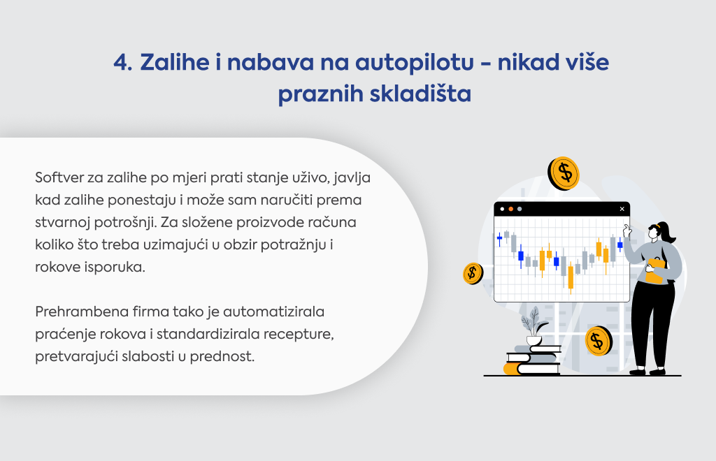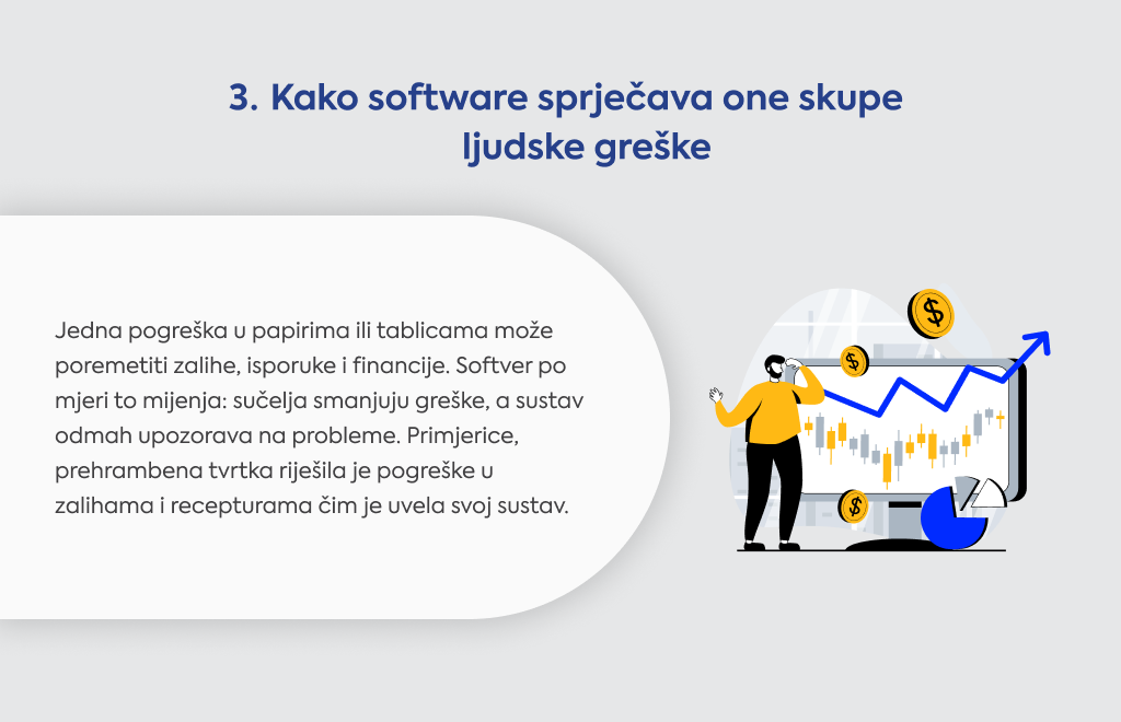 Automatizacija i pametna sučelja sprječavaju one skupe greške zbog ljudskog faktora, a pametno upravljanje zalihama osigurava da vam nikad ništa ne ponestane