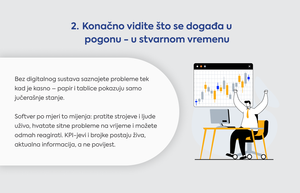 Šefovi pogona saznaju da strojevi stoje, da nema materijala ili da je plan propao tek kad je već kasno.