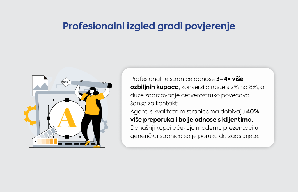 Agenti s kvalitetnim stranicama dobivaju 40% više preporuka i grade bolje odnose s klijentima.