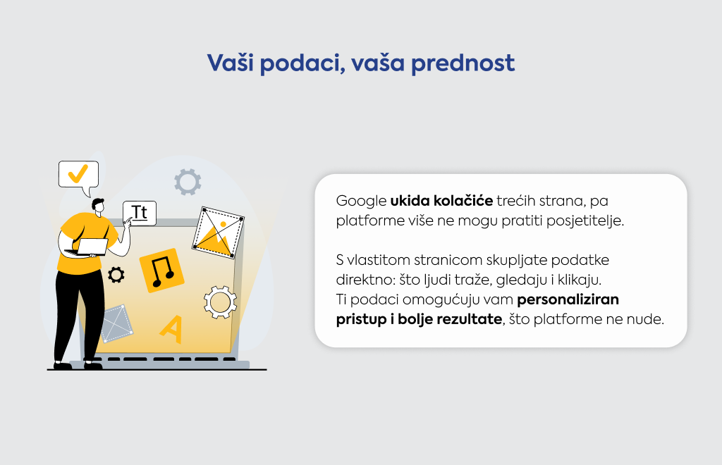 Ali s vlastitom stranicom, vi skupljate podatke direktno - tko se prijavio na newsletter, što ljudi pretražuju, koje nekretnine ih zanimaju.