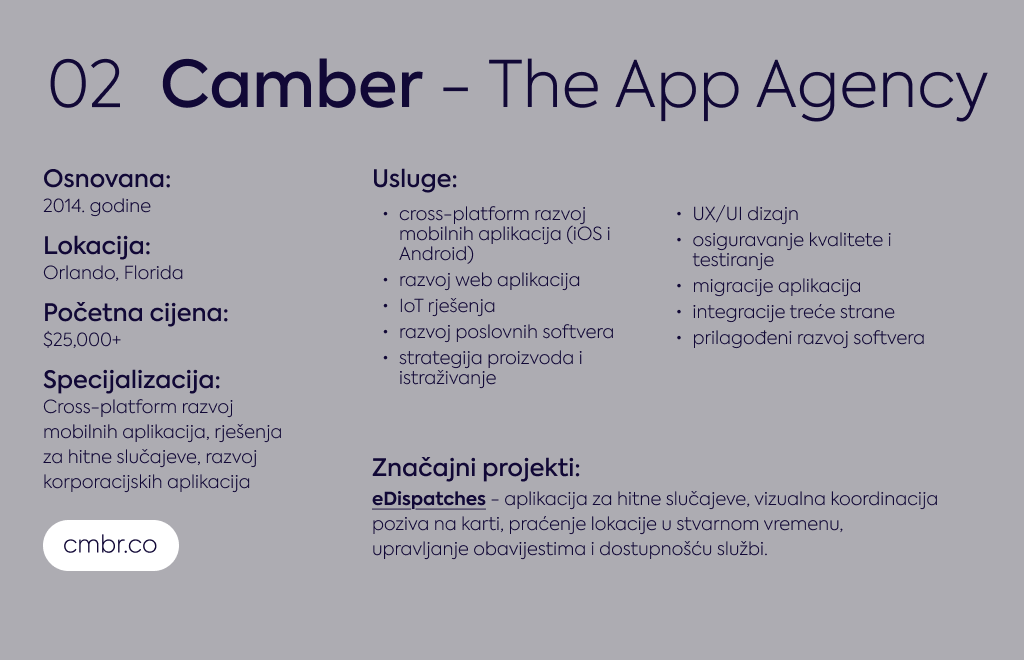 Kada trebate kritične aplikacije koje mogu spasiti živote, Camber pruža ekspertizu koja je najvažnija.