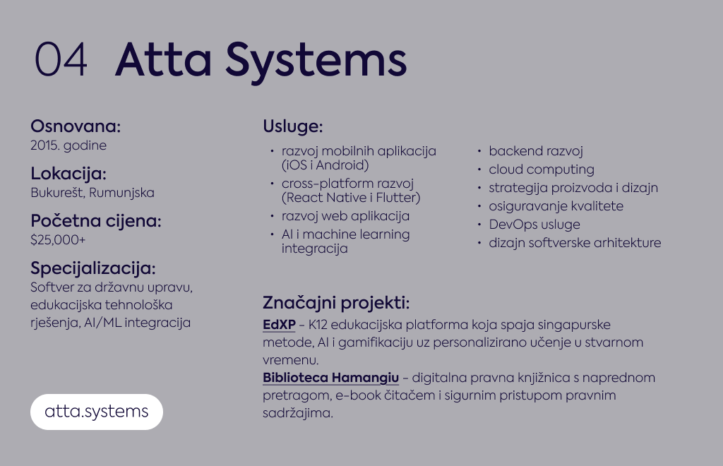 Atta Systems: donosi iskustvo na korporativnoj razini radeći s velikim organizacijama poput UNICEF-a i Svjetske banke, pomažući u stvaranju više od 100 milijuna dolara tržišne vrijednosti
