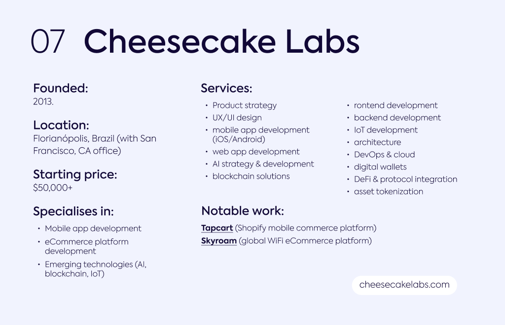 The proof is in their partnerships - Cheesecake Labs' multi-year collaboration with Tapcart resulted in 300+ Android shopping apps for Shopify merchants, while their work with Skyroam built a custom scalable platform supporting global expansion to 130+ countries.