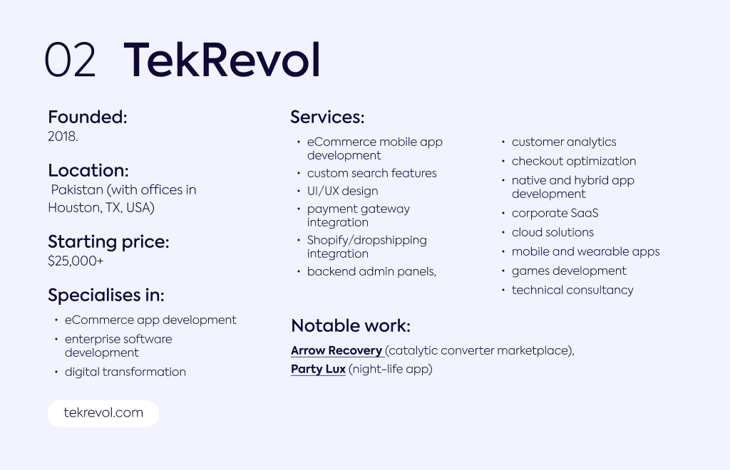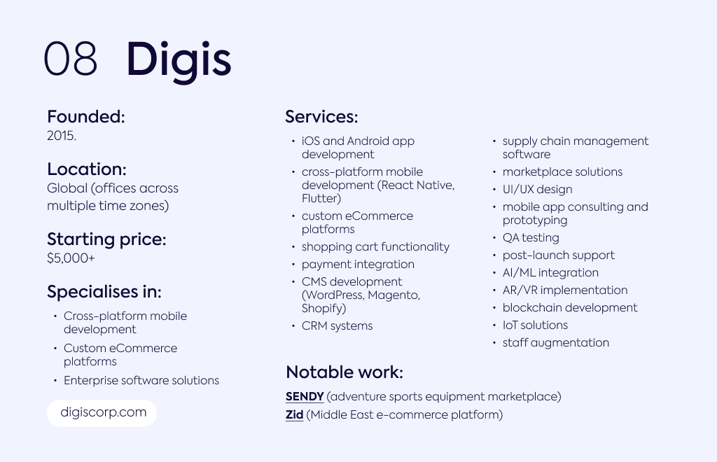 Specializes In: Custom eCommerce app development, enterprise software solutions, AI-powered mobile applications