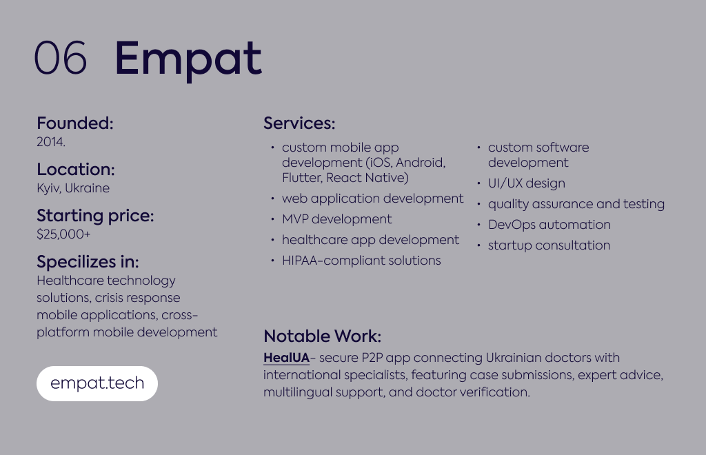 Empat specializes in healthcare technology and crisis response solutions, connecting 2,200+ physicians worldwide through secure platforms